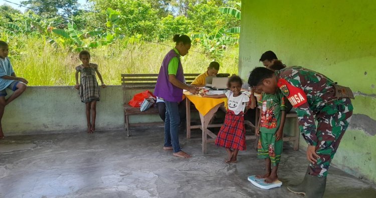 Kabupaten Sarmi, - Dalam upaya meningkatkan kesehatan masyarakat, Babinsa Koramil Sarmi, Sertu Ismail, turut mendampingi kegiatan pelayanan kesehatan berupa pemeriksaan darah dan pemberian obat malaria kepada warga di Kampung Waskey, Distrik Sarmi Timur, pada Selasa (21/04/2026).